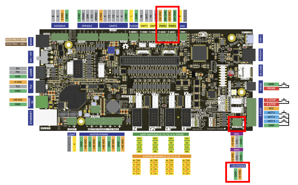 I can see that the pinout seems to suggest switched ground on 24V, fine, maybe I don’t know where to turn it on. But the 5V plug is just for LEDs! Still 0. I find this concerning even if the machine otherwise works fine.