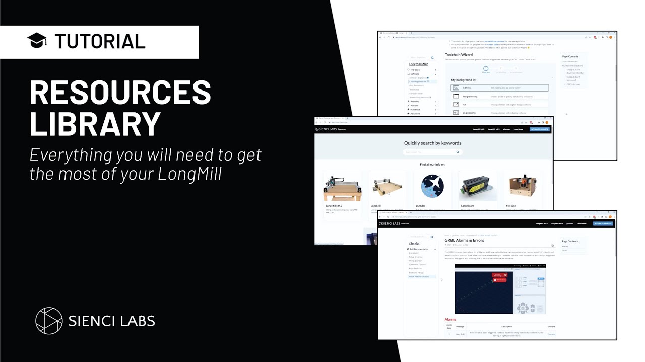 At Sienci Labs, one of our top priorities is to provide makers with the best support. That is why we created an extensive Resources section on our website. We have everything. From what type of software to use, troubleshooting guides, in-depth knowledge of CNC terminology, our feeds and speeds database, and more.