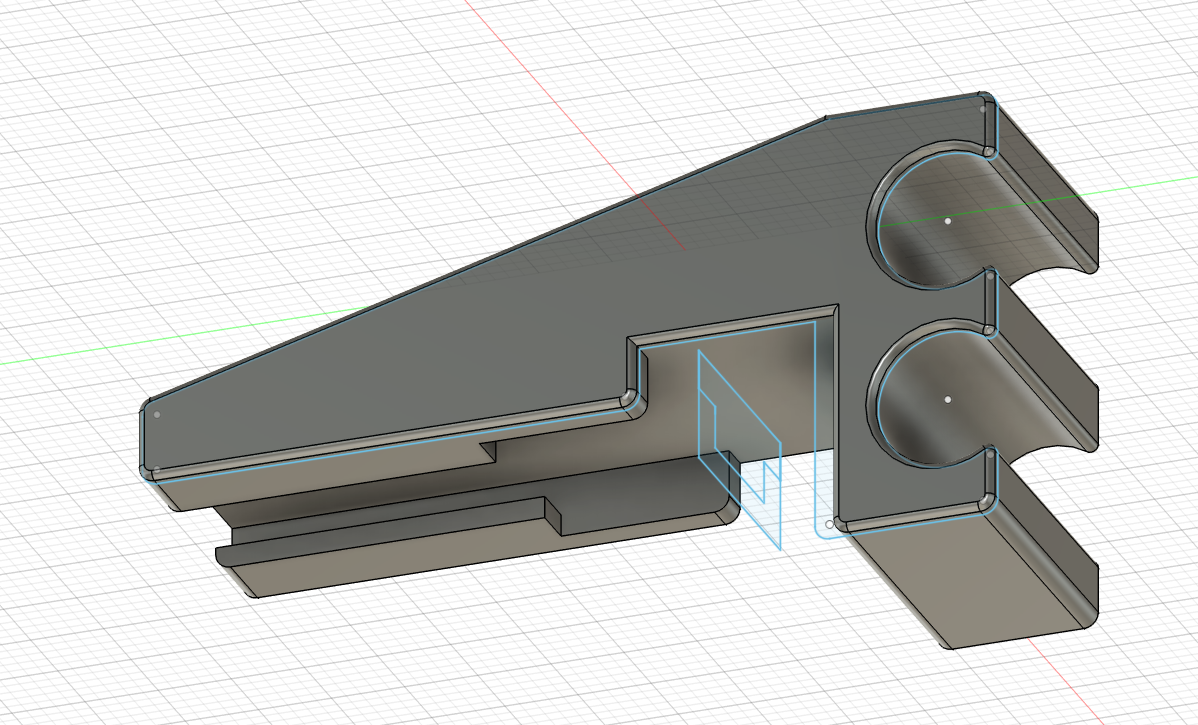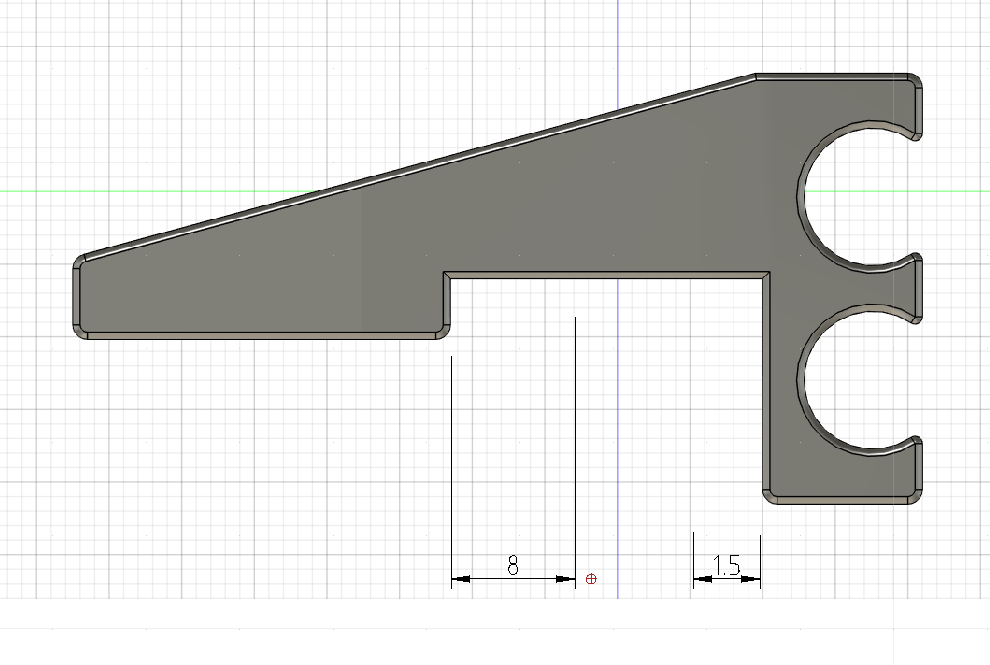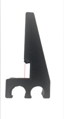 Almost! sorry the wife has me doing the semi annual deep vacuuming of the house. We just sent my daughter to college and she usually takes care of floors. But her being a teenager and all she doesn’t do the most thorough of jobs! That’s almost perfect but I need the ears of the t track removed as well. I need to be able to pull the holder to the right to get at the clip and those ears will hit the inside of the drag chain and stop that movement. also if you have time before you head out, can you also do an additional file that has a .5 to .7mm thick piece of string or support going from the left side (or back of) the foot as it is in that photo to the to the start the back of each t track to act as a kind of support. That way I can cut it loose but the t track will be supported instead of trying to print an over hang. I have found that printing these with the tube holders (foot) down on the 3d printer surface and the t tracks/arm pointed straight up in the air gives me the best print except for when it 1st starts to print the t rack it is printing on an unsupported surface so it droops. You can see the corner of the t track print isnt tight. the red line is just showing where id like the .5 to .7mm tube to support each corner of the t track