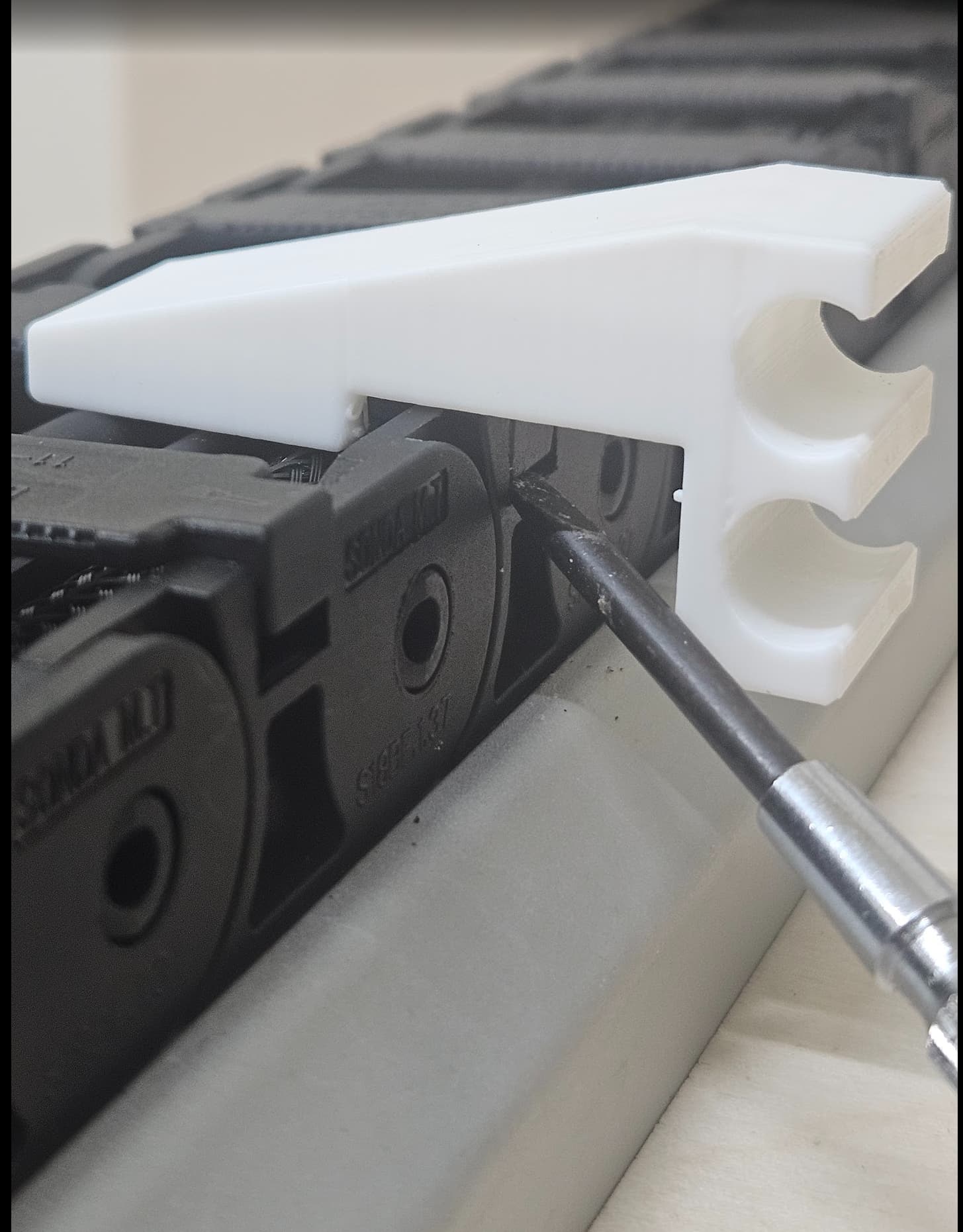 @Headshop Correct. The further out from the centerline of the drag chain, the smaller the radius will be where the drag chain loops. The tubing will certainly want to move inside the slot. So making sure the hole in the clamp allows for that movement is important. Or accept the fact that the tubing will bend in between clamps. You probably don’t want the tubing to stretch. Too much and it may eventually break/leak.