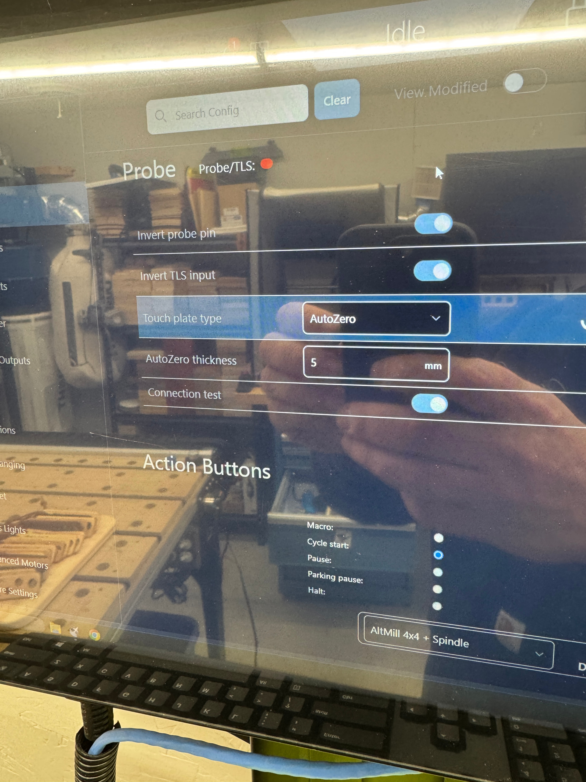 What @LWH was asking about was the Onefinety TLS. I hope he has made some progress on his set up. When I look into my $6 and $668 they are both set to invert and my system recognizes both individually when they are contacted. At an idle state the probe indicator is red. When I touch either my TLS or touch the magnet to my touch plate the indicator changes to green with either one respectively.