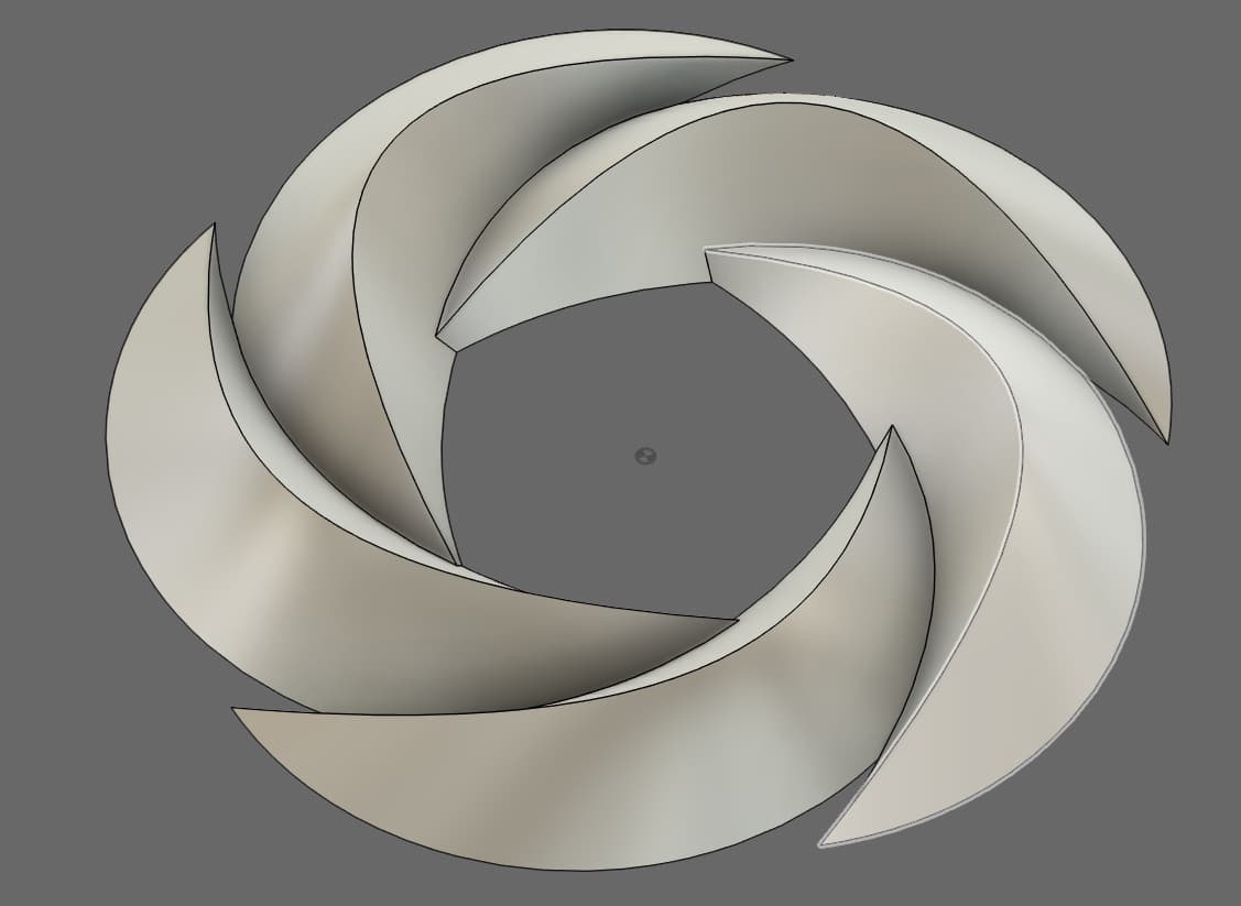 The object starts off as a crescent shape that is copied around a centre point. You then make a donut the size you want and extrude it using the intersect option to remove the part you don’t want. That gives you the basic shape to work with.