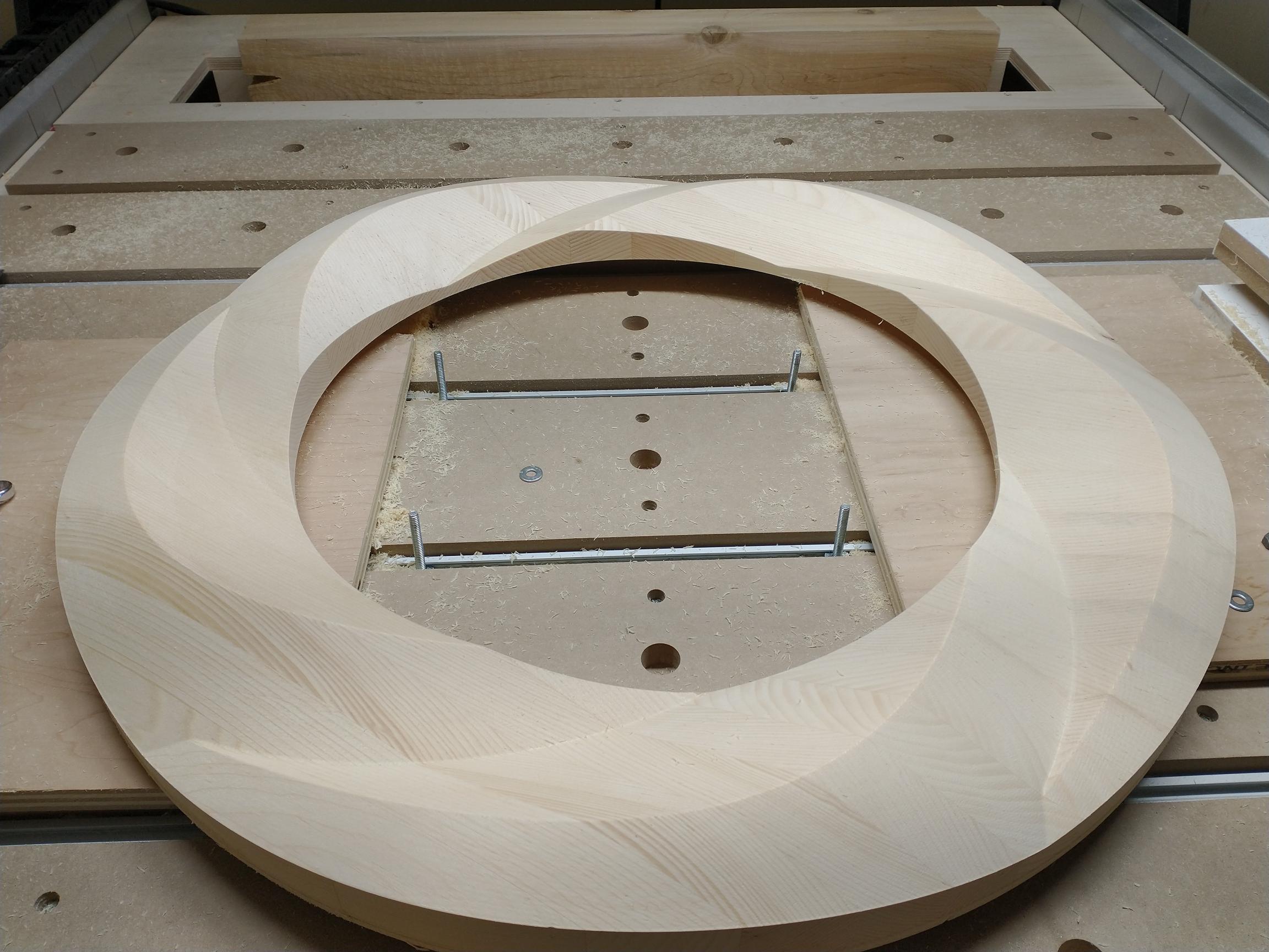 Excluding cutting the inner and outer diameter, this took 4 hours but could have been done in 3 with a properly configured roughing toolpath. vCarve estimates were twice as long as gSender estimates. gSender was close to actual cut time. I donāt know why vCarve is way off since it should simply be a mathematical calculation based on the the shape, the cutter parameters, and the feed speeds.