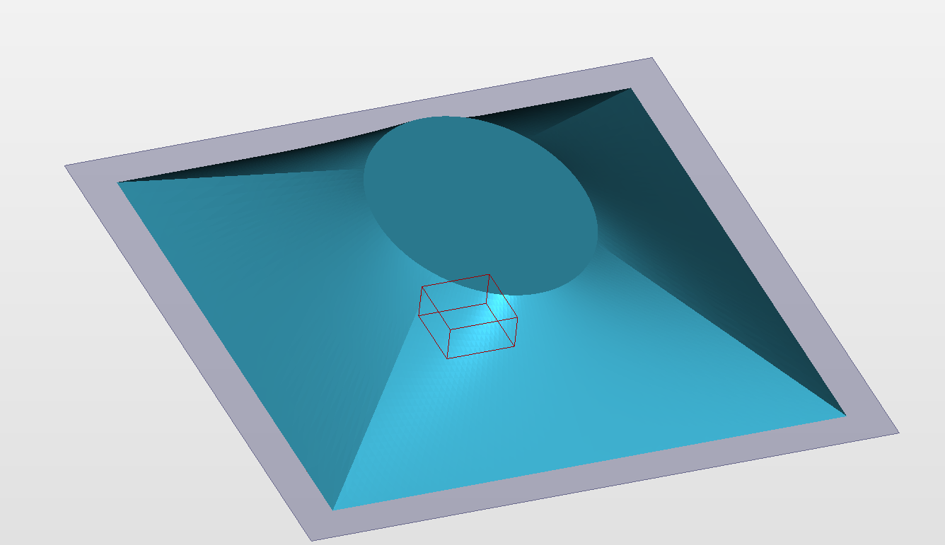 Let’s say I have a 2” thick piece of wood, 10” x 10”. I have an oval in the center of the piece of wood that is just flat. From the edges of that oval, out to the edge of the wood, in all directions, I want it to curve/slope to zero. Sort of like an upside down bowl, except it doesn’t end in a circle at the edge, it ends in a square. At the corners of the square piece of wood, the slope from the oval edge to the workpiece edge might be 5” or something. From the middle of the piece, the slope from the oval to the edge might only be an inch or so. Just contouring from the edges of the oval out to the edges of the square work piece.