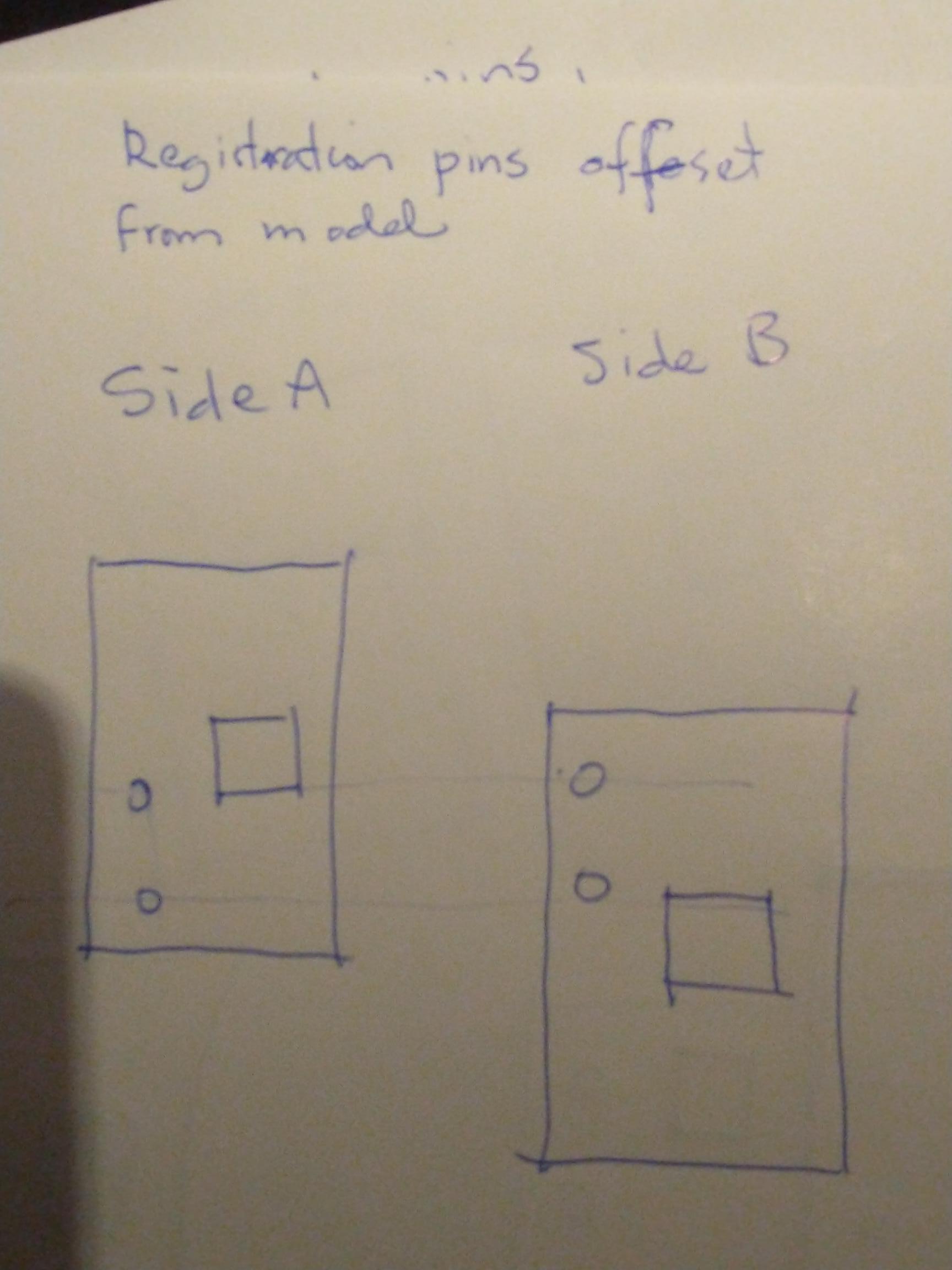 I think I understand your explanation. I would think that the registration marks on the model would need to be centered on the model. Any offset would would show up when you flip it.