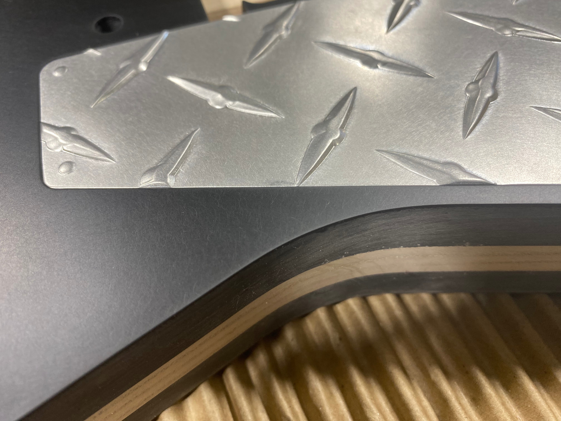 Instead of using a binding, I routed a groove on the outside edge and filled it with black epoxy to give it some contrast. Why, because, why not? I’ve never seen it done before.