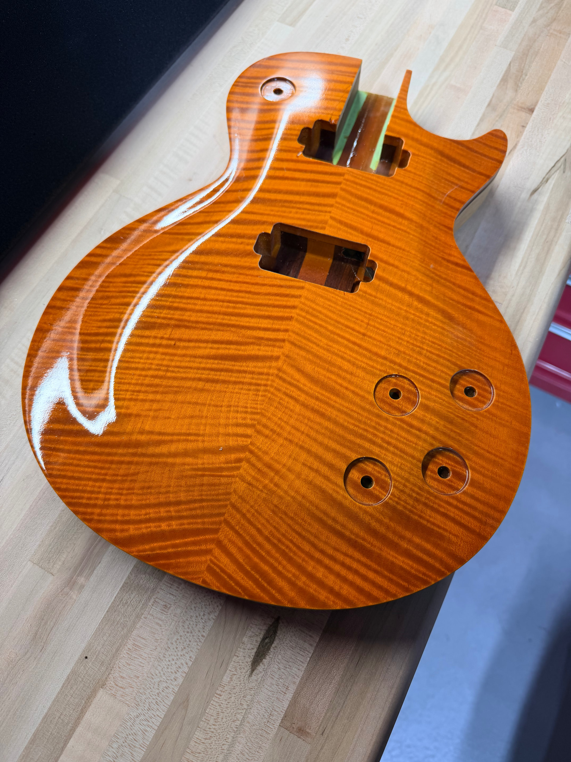 Yeah, I do need to finish it…. Life, just keep getting in the way. I have about 60 coats of clear on the body, waiting for summer to add some more. I will still need to wet sand and polish.