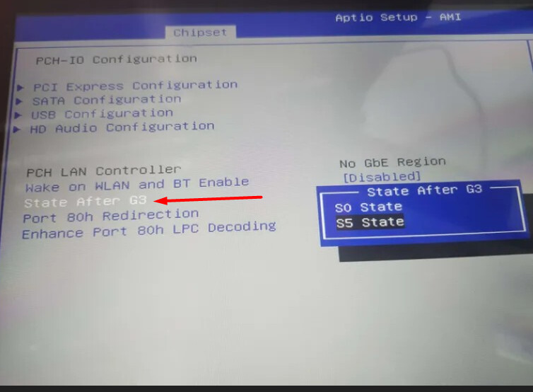 : Access bios by repeatedly hitting del; Select -ADVANCED; Select-SUPER I/O CONFIGURATION ; Options here are- āRestore AC Power Loss By IOā - Options are Last State / On / Off .