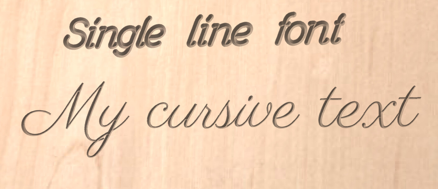 @Aimlessmee And some text. First example using a single line font and a profile toolpath. Second example using a closed vector font with a v-carve toolpath.