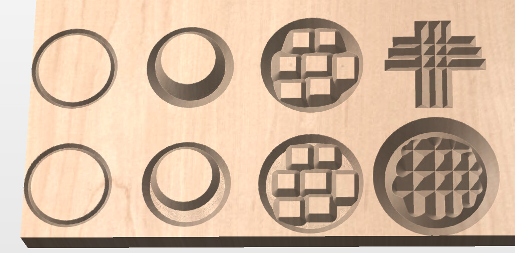 @Aimlessmee Here are some examples. The bottom right is done with a profile cut using “On” for the cut location, The others are all done with a v-carve. Bottom row has the flat depth defined. so the v-carve may have a flat bottom.