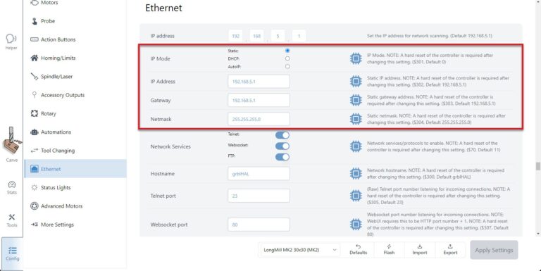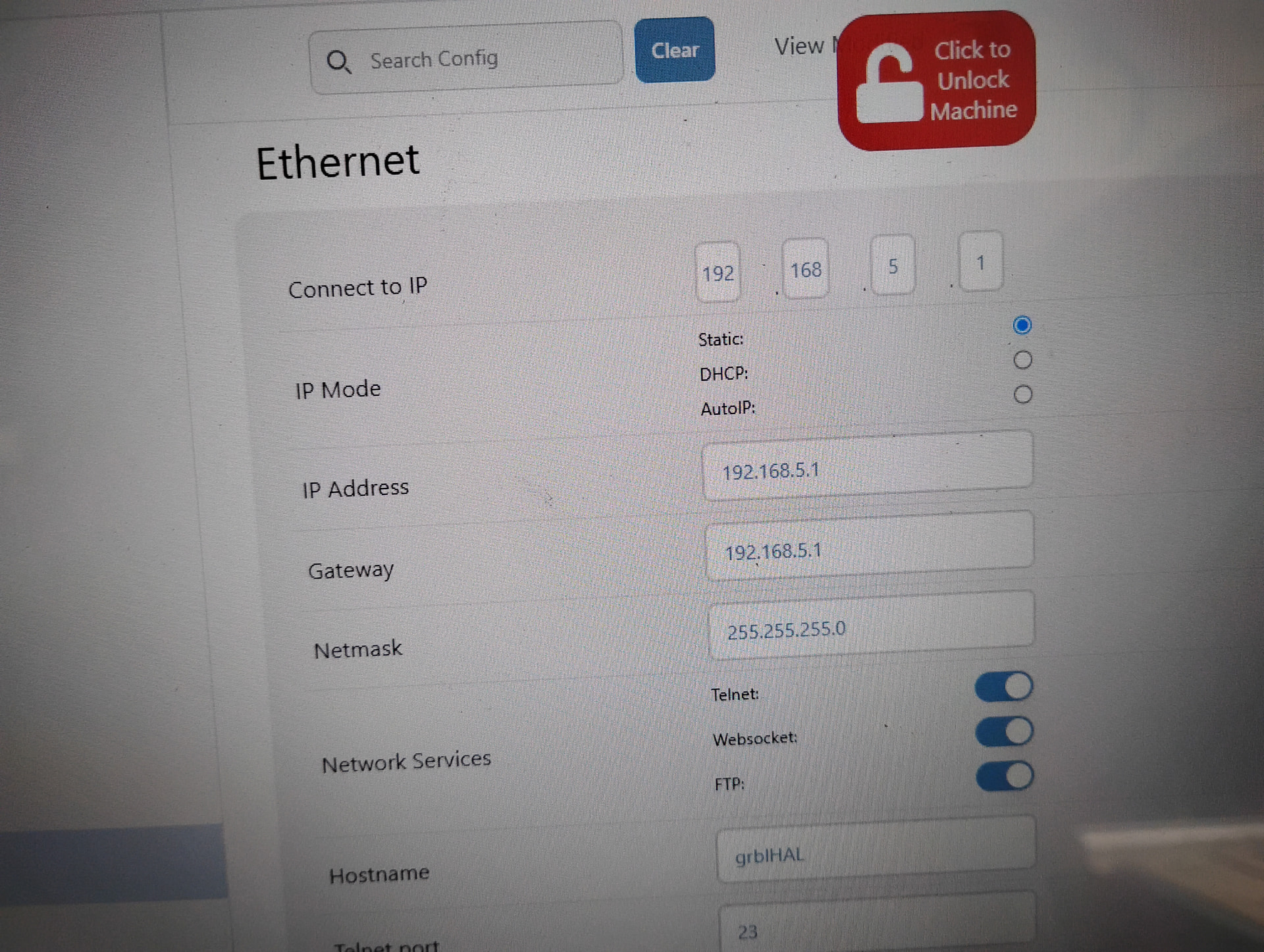 I have not yet set up my ESP01 serial to wifi unit yet. I need to work out the interfacing. Could it be that I have to connect the unit to my CNC machine before it will see the IP address and allow me to change the IP? As it is, only the preset IP addresses seem to be available.