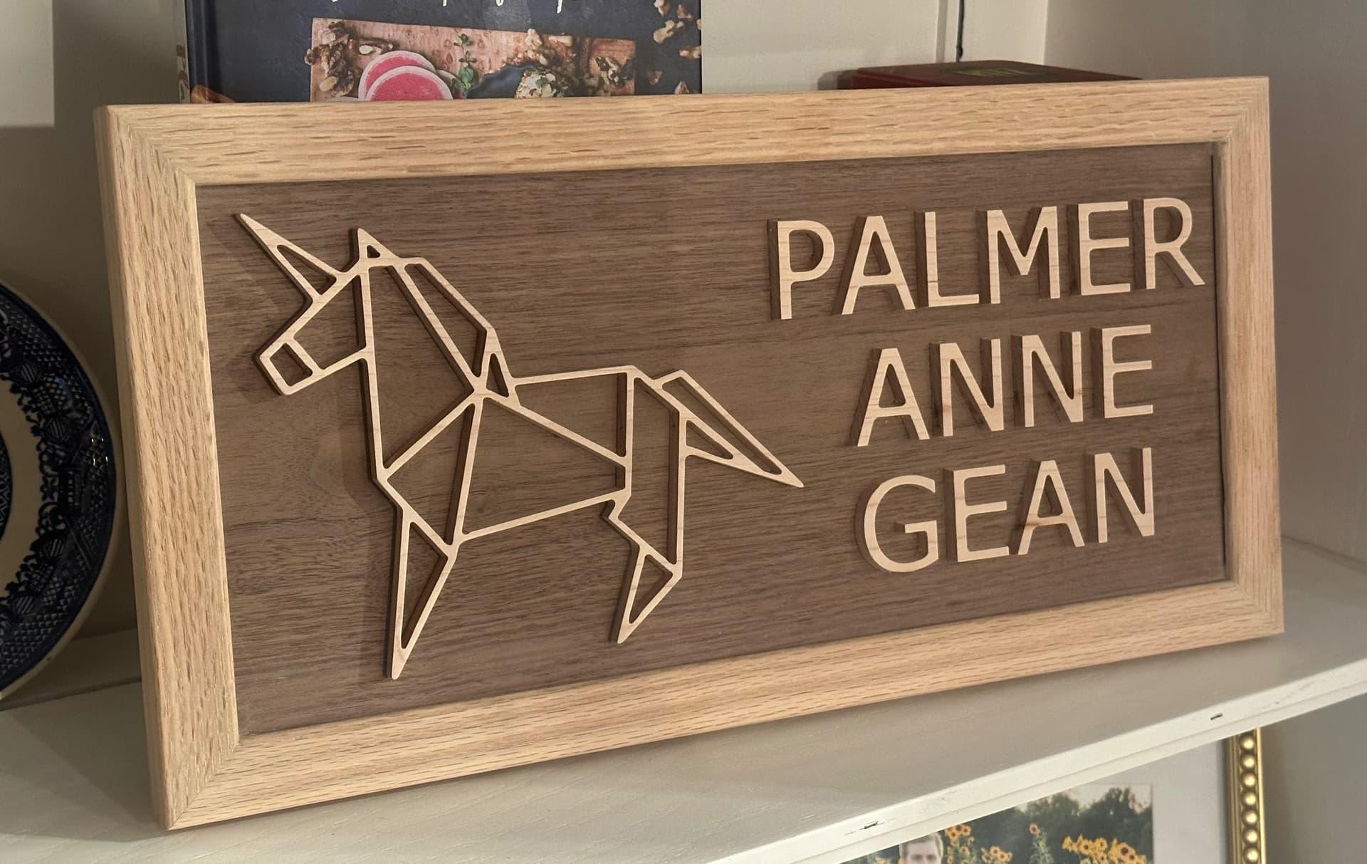 I use VCarve and honestly I thought about making it a 2-sided project. I posted on the Facebook user group and someone told me to do basically the exact same thing that you’re recommending . The problem is that I’ve never done one before. I’ve only watched videos of 2-sided cuts, and the piece I was cutting from was on “obscure” shape so I was worried about getting it lined up on both sides after the flip. I would like to do that for a future project because I want to make a really large bear and fox geometric piece for my son’s rooms. My issue on this piece is that I was up against the clock and running out of time. I think I posted this request on Friday night and my niece’s birthday party was Sunday mid-day. I really didn’t have the time to practice, mess up, and correct for my first attempt on a 2-sided cut. I ended up taking the advice from a neighbor who works in graphic design. He recommended I make an opposing color 3-D profile piece, milling down and cutting the original piece out at a really thin depth. See the attached piece.