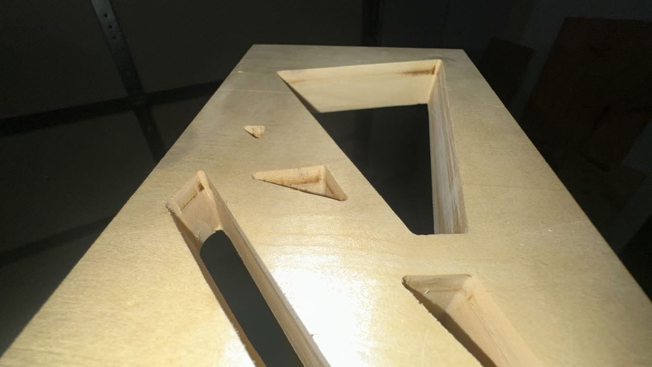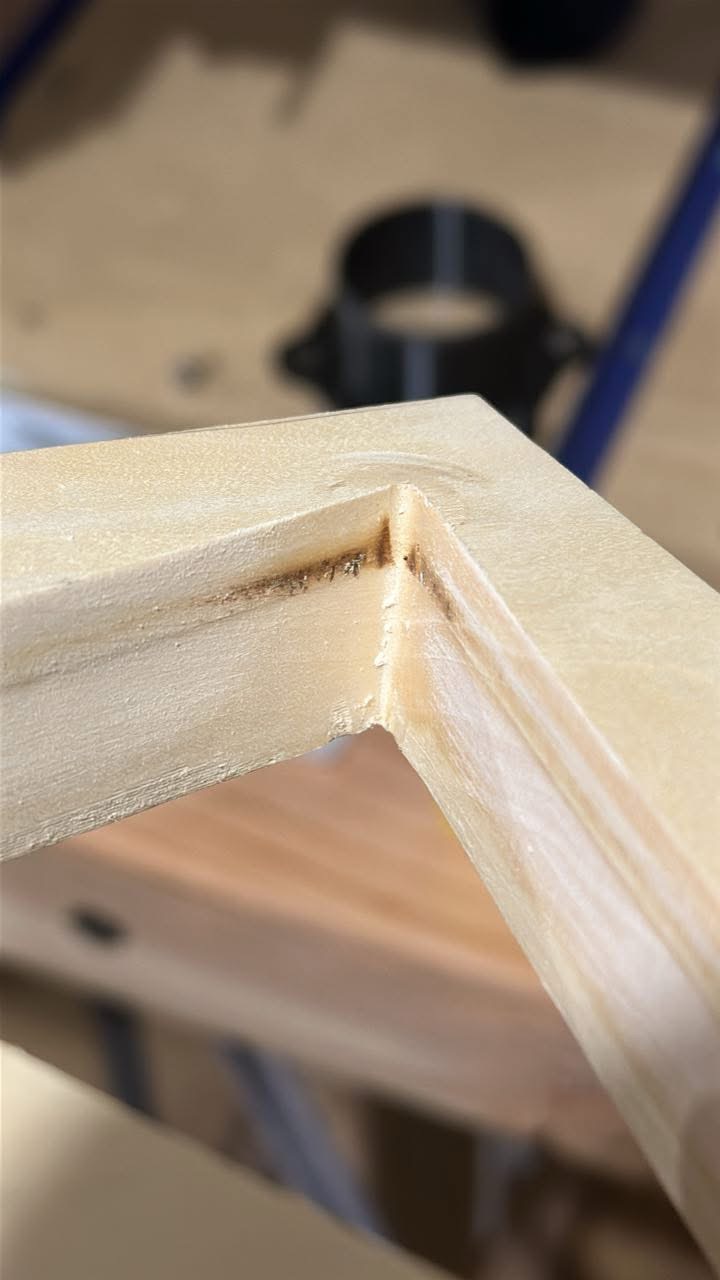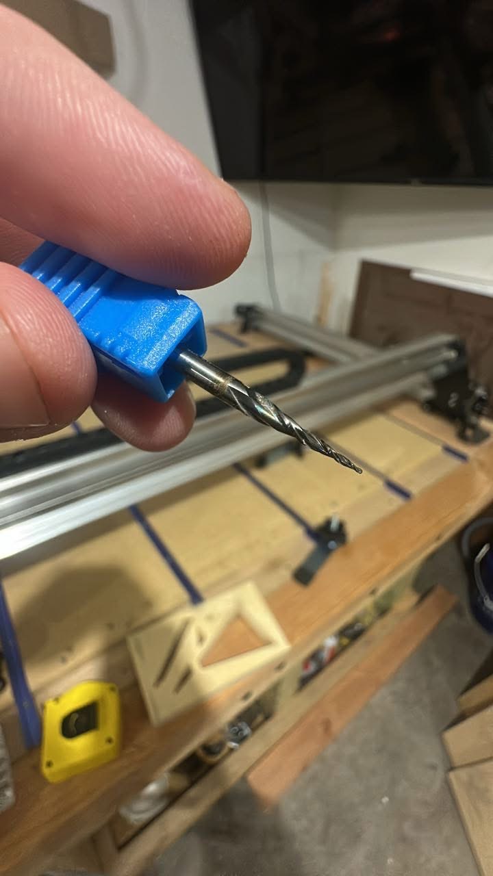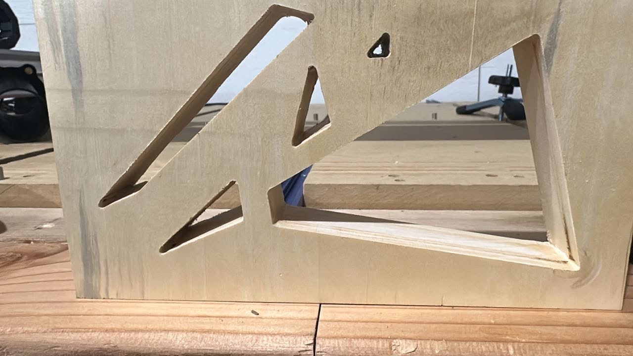 Since the wood is thicker than the Tapered Ball Nose bit’s reach, I started smelling burnt wood and quickly realized I’d made a mistake. There’s a 2mm burn mark around the inner edges, just above the 0.6-inch depth, as well as a ring of resin/burnt fibers on the bit where the shank meets the flute. Should I plane the wood down to half an inch (though I don’t love how thin that is), or is there a better technique or tool for cutting into those sharp inner corners for wood that’s about 1 inch thick? I’ve also considered that the vector needs to be larger for this to work? The vectors total dimensions were around 12”x8” because it fits perfectly onto a piece of Boxelder Maple that’s in my garage.