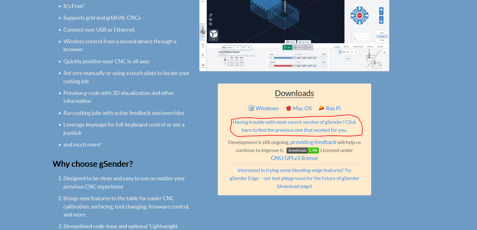 The website instructions for installing the Pi version of Gsender say to download the Appimage copy (strangely, they also offer a .deb version but there are no instructions on how to install it).