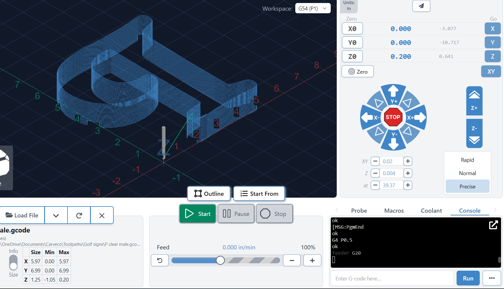 In this particular case I just got done with a toolpath. I did a short jog and was about to change bits. Didnt physically touch it.