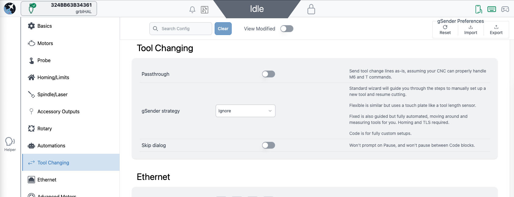 Trying to configure my tool setter on my DIY CNC running grblHal. For some reason, when I run the M6 command I never see a dialog box. None of the tool probing options change this behavior, I’m using V1.55 and also tried v1.54 to no avail. Using tools between 1-16 with M6 T#. It shows the purple status bar saying tool change but no where to proceed. Any help? Am I missing something? Thanks