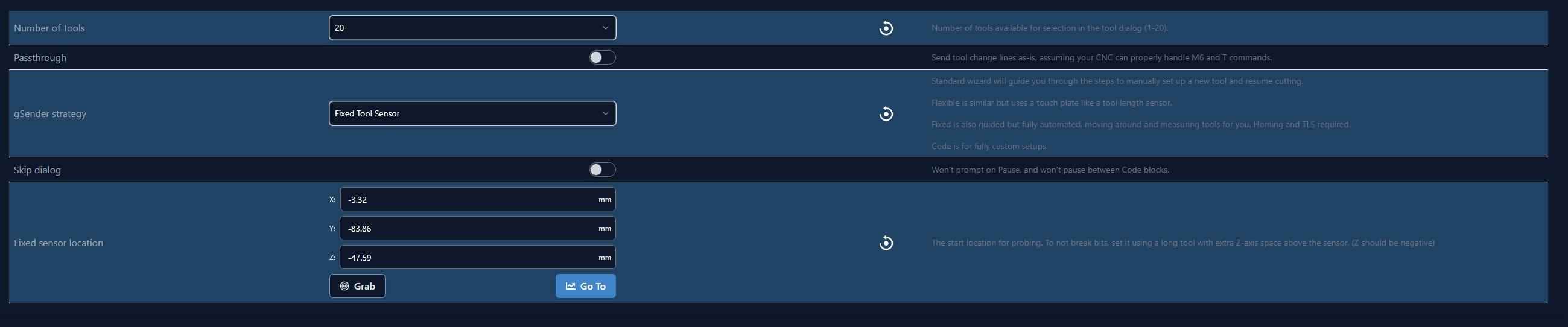 Ah I see, it only triggers the dialog box when the M6 is issued from a .nc file. I’m confused about the workflow, if I wanted to manually touch off to find my Z offset, is there a way I can measure the tool without loading a .nc file? That’s my usual workflow; i.e. load a tool → probe tool length → touch off → all other tools reference the original TLO.