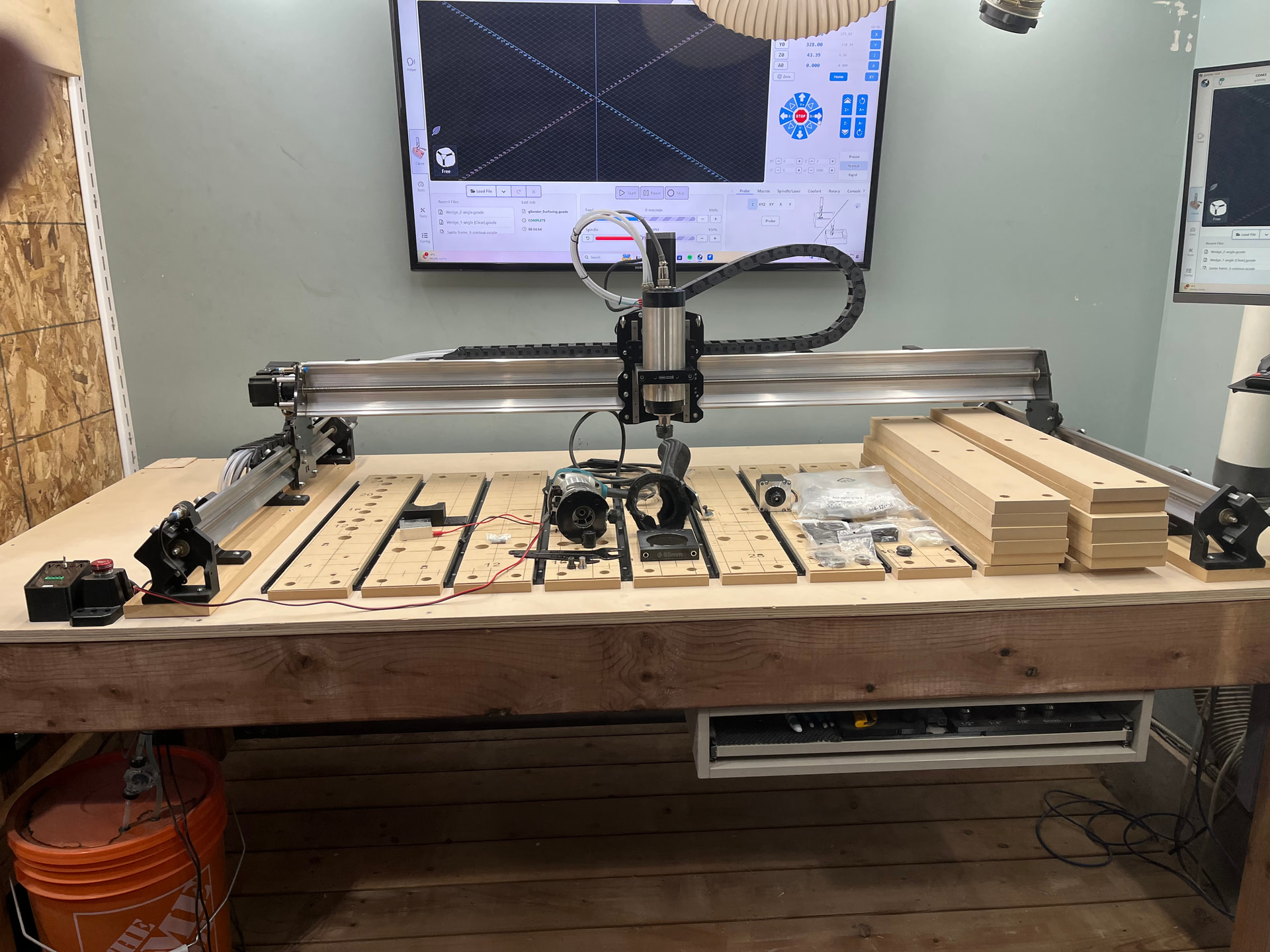 I’ve just purchased an Altmill 4x4 and must sadly part with my trusted upgraded Longmill MK1 (batch 4, I think) to make room for the Altmill. This original 30x30 Longmill was modified to 24x30 in order to fit in my one car garage while we still parked the car in the garage. It has now been converted to a full-on workshop so I can now fit a larger CNC. The Longmill has also been upgraded to 48" with the Sienci 48" Extension Kit with MK2 Z-Axis for a total cutting area of 26" x 51". I also upgraded to the Super Longboard and added the Inductive Sensor Kit.