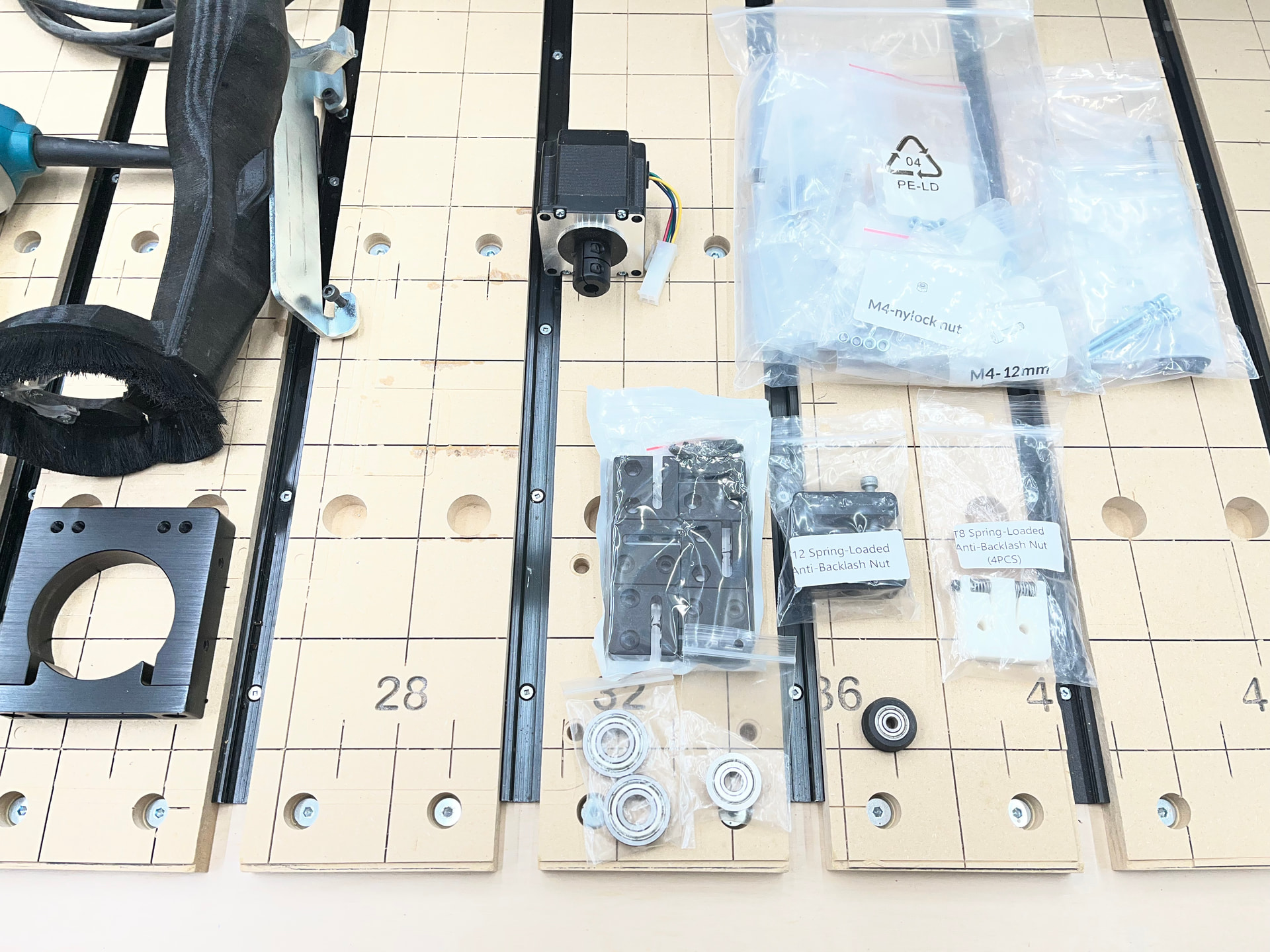 - Variety of spare hardware (anti-backlash nuts, nuts, bolts, bearings, etc)