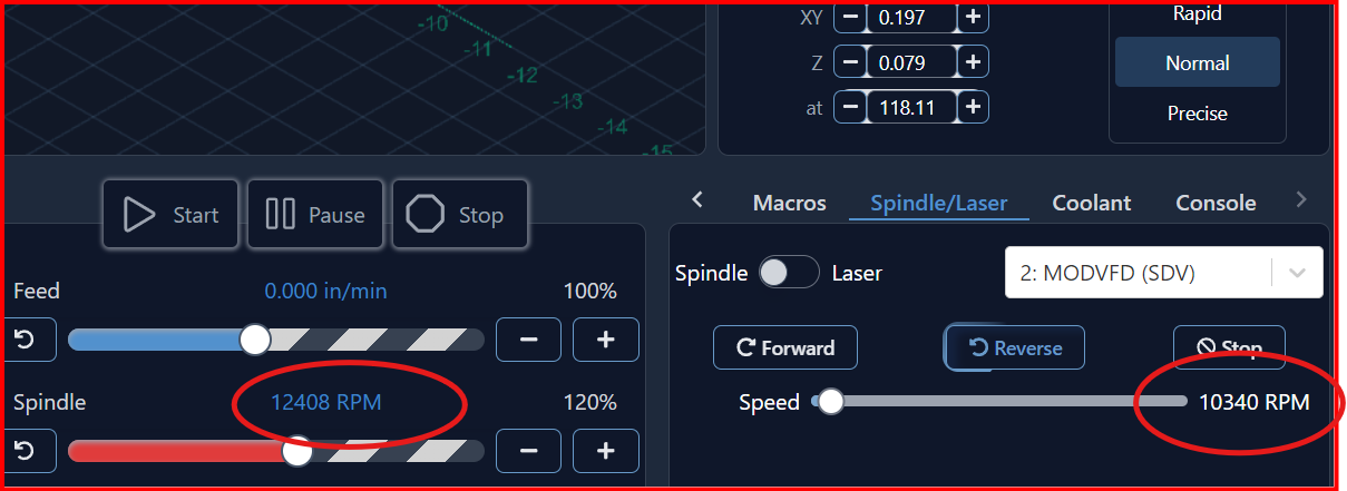 There are two controls for spindle speed. When I adjust the speed using the center panel the RPM rea-out does not update at the lower right panel. gSender 1.5.2
