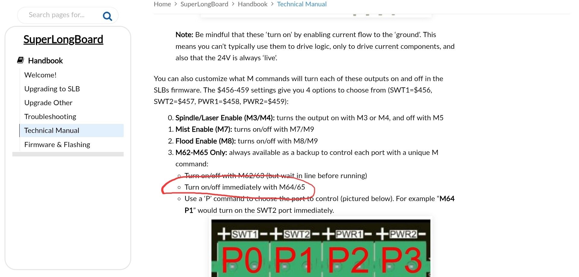 Right but the problem is the M64 P0 and M65 P0 commands don’t do anything. When the pointer is plugged into the SWT1 port it turns on and I’m unable to turn it off using the gcode commands.