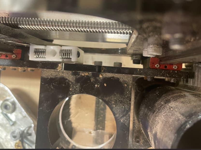 Ran into an issue getting the one for the z-axis installed: the original bolts were 1.3" tall. The new ones are 1.52". This picture is looking down the z-axis - note the small bolts to the right of the anti-lashback bolt. They are high enough, that because of the new bolt size, you cannot get the thread holes lined up. I had to cut the 4th one down, only by 0.070", but still, it was a pain. Sienci guys - you may want to make one of the four a bit smaller. Just my two cents…