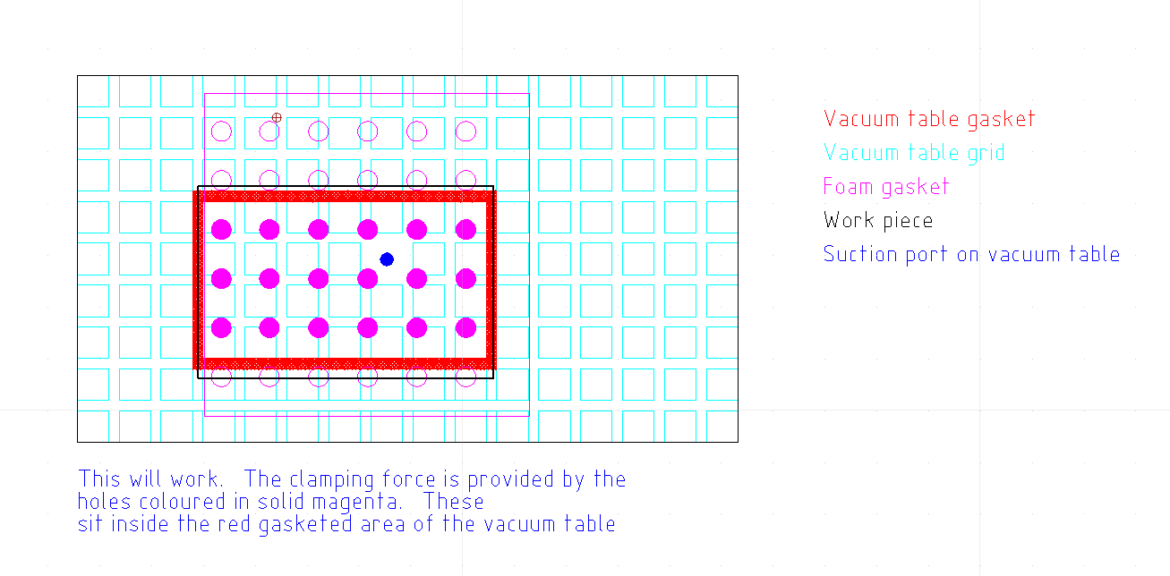 In the drawing above, if you remove the âfoam gasketâ, your work piece still covers the vacuum tableâs gaskets on all four sides. There should not be any any leak.