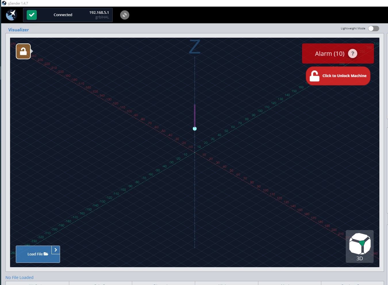 @Lappa No, gSender is still connected through the ethernet port. You canāt jog or move, of course, until power is restored. Here is a screen cap of what gS looks like with the estop engaged. Note that the machine is locked, but it is still connected.