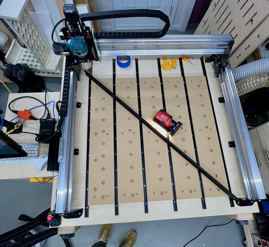 I own a MK2.5 from Sienci Labs, and after 2-3 years of use (time flies!), I’m working on a project that covers the full table area. During this project, I discovered that my wasteboard isn’t perfectly flat—the bit was cutting deeper into two diagonal corners. I resurfaced the wasteboard, assuming I’d made an error during the initial surfacing, but the same issue persisted.