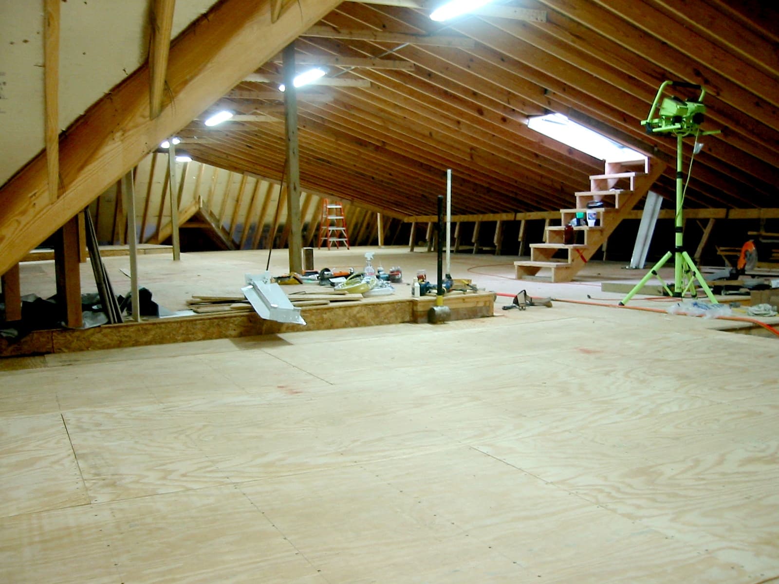 The attached picture is what the attic looked like when it was initially floored, 20 years ago. It is now filled with dozen of shelving units to store all of my building materials. I am a “pack rat” and generally save anything that may be used in future projects.