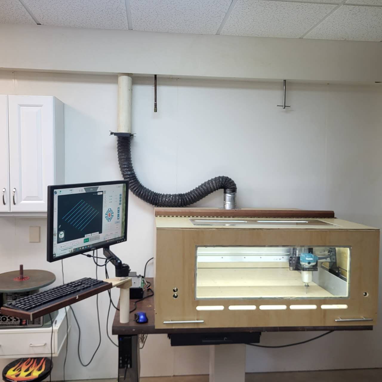 I designed my home and everything in it. My first objective was to have a real workshop (not a repurposed garage) I installed a dust collection system for my stationary tools. The dust collector is isolated from my workshop to decrease the noise.